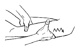 Поколачиваниё одним пальцем. Этот способ поколачивания следует применять при массаже лица, в местах переломов, на небольших мышцах и сухожилиях.
