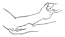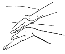 Прием можно выполнять одновременно всеми пальцами, используя ладонную поверхность концов четырех пальцев.