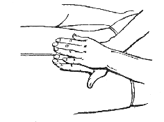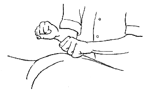 Выполнять данный прием нужно тыльной поверхностью указательного пальца или его локтевым краем. Темп ударов должен составлять от 100 до 130 ударов за 1 минуту. Удары следует производить расслабленной в лучезапястном суставе кистью.
