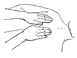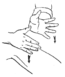 При выполнении данного приема кистями обеих рук нужно обхватить грудную клетку по бокам и выполнить в горизонтальном направлении колебательные движения. Движения должны выполняться ритмично (рис. 105).