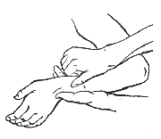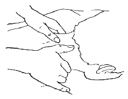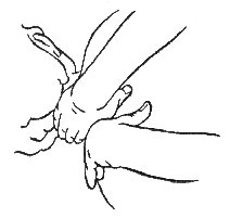 Если же растирание выполняется всеми пальцами, кроме большого, опорную функцию выполняет большой палец или опорная часть кисти. Рисунок 72.