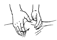 Пунктирование. Этот прием следует применять на небольших участках поверхности тела, где подкожная жировая прослойка практически отсутствует (например, на лице, в области груди), в местах образования костной мозоли после переломов, на связках, сухожилиях, небольших мыщцах, в местах выхода важных нервных стволов.