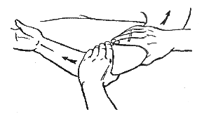Встряхивание. Прием используется при массаже конечностей для улучшения кровообращения, снятия мышечного напряжения, а также для увеличения подвижности мышц и суставов.