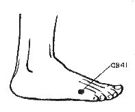 Указательный, средний и безымянный пальцы правой руки поставить на точку GB