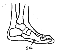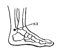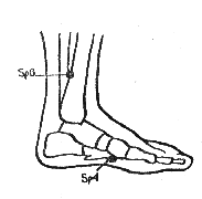 стопы между 1 и 2 пальцами. Применяется при мышечных судорогах нижних конечностей,