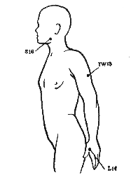 и безымянным пальцами точки TW 15. Произвести надавливание на обе точки в течение