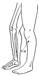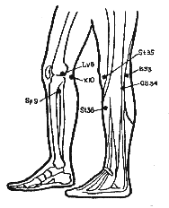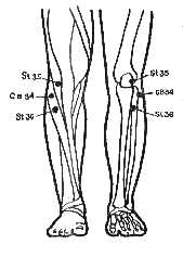 на задней стороне голени. Постепенно увеличивая давление, массировать точку
