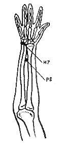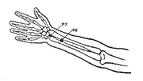 стороне предплечья на 2,5 пальца вниз от сгиба кисти (рис. 205). Снимает боль