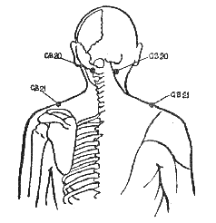 Точка GB 21 (“плечевой родник”). Симметричная точка, находится у верхнего края