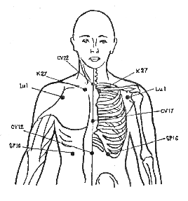 1 минуты. Правая рука должна выполнять массаж точки TW 15 на правом плече, а