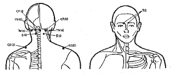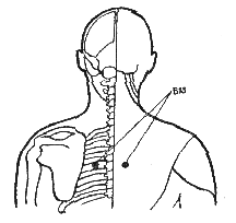 Точка GB 20 (“ворота сознания”). Симметричная точка, расположена в углублениях