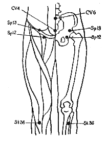 рук легли на точки В 54 на сгибе коленного сустава. В течение 1 минуты следует