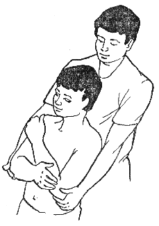 Затем нужно медленно отклонить корпус назад, наращивая усилие в фазе вдоха и ослабляя его в фазе выдоха. Чтобы прием не был болезненным, его следует выполнять в горизонтальной плоскости. Повторить его необходимо 5-6 раз.
