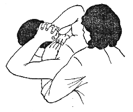 Производящий прием должен соединить обе руки на затылке больного и произвести мягкий захват, сдавливая голову внутренними поверхностями предплечий, стараясь сблизить их (рис. 226).