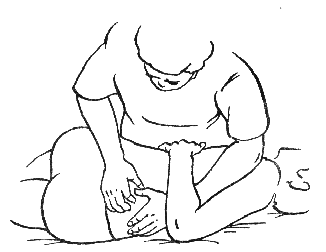 3. И. п. — лежа на животе. Большими пальцами ассистент массирует мышцы по обеим сторонам позвоночного столба в направлении от позвоночника.